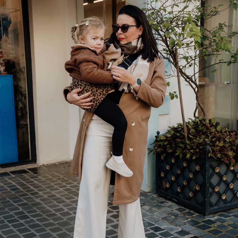 The PouchCo Adventurer Ergonomic Toddler Sling Carrier – Leopard Print is a stylish, lightweight solution for comfortable toddler carrying on the go. Designed as an ergonomic shoulder sling, it supports healthy hip development in the natural ‘M’ position while distributing your toddler’s weight more evenly across the hips and lower back—reducing strain on arms and shoulders.