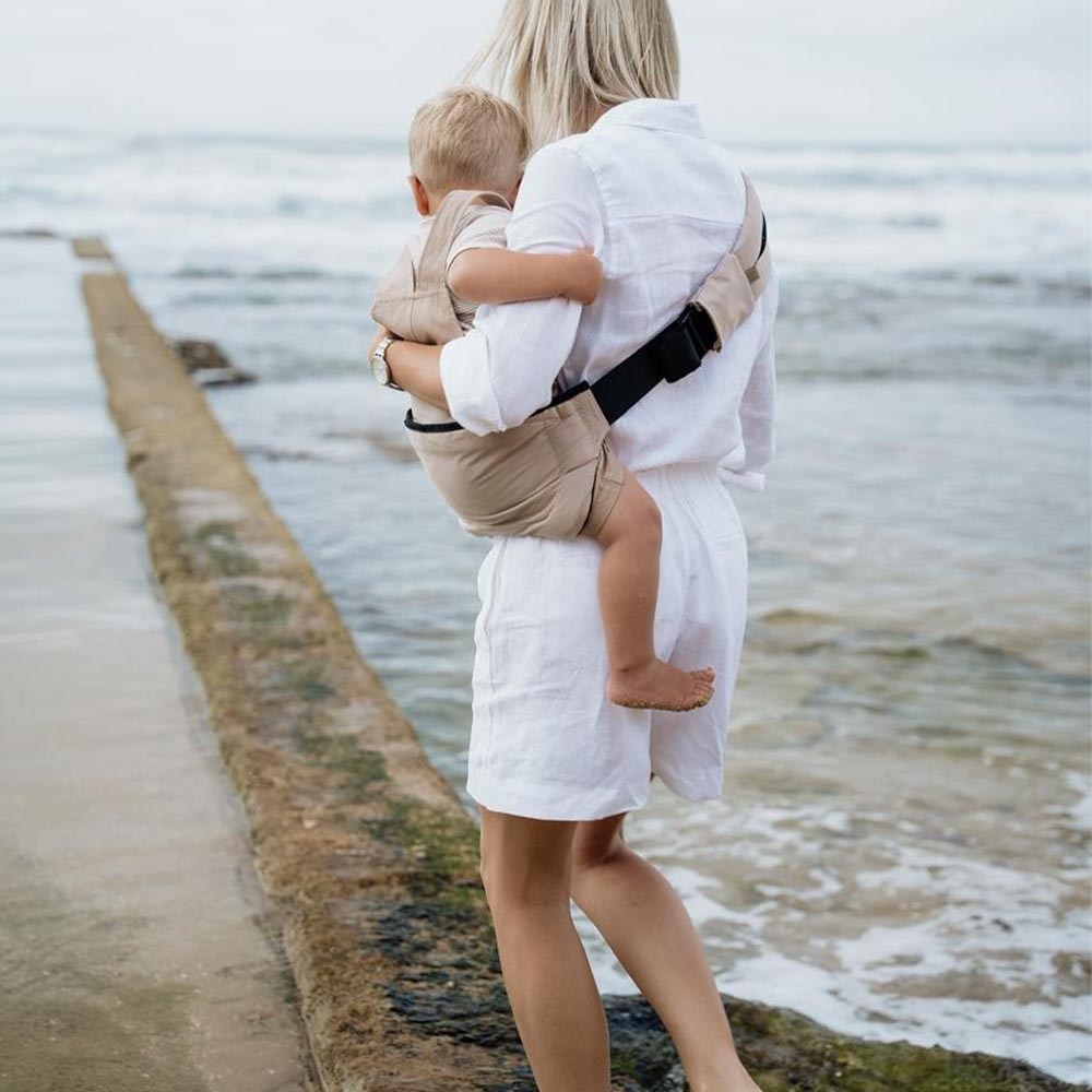 The PouchCo Totterrain Ergonomic Toddler Sling Carrier – Khaki with Non-Slip Seat & Breathable Shoulder Strap is a stylish, lightweight solution for comfortable toddler carrying on the go. Designed as an ergonomic shoulder sling, it supports healthy hip development in the natural ‘M’ position while distributing your toddler’s weight more evenly across the hips and lower back—reducing strain on arms and shoulders. With extra convenience, the carrier has a place to tie keys or a pacifier.