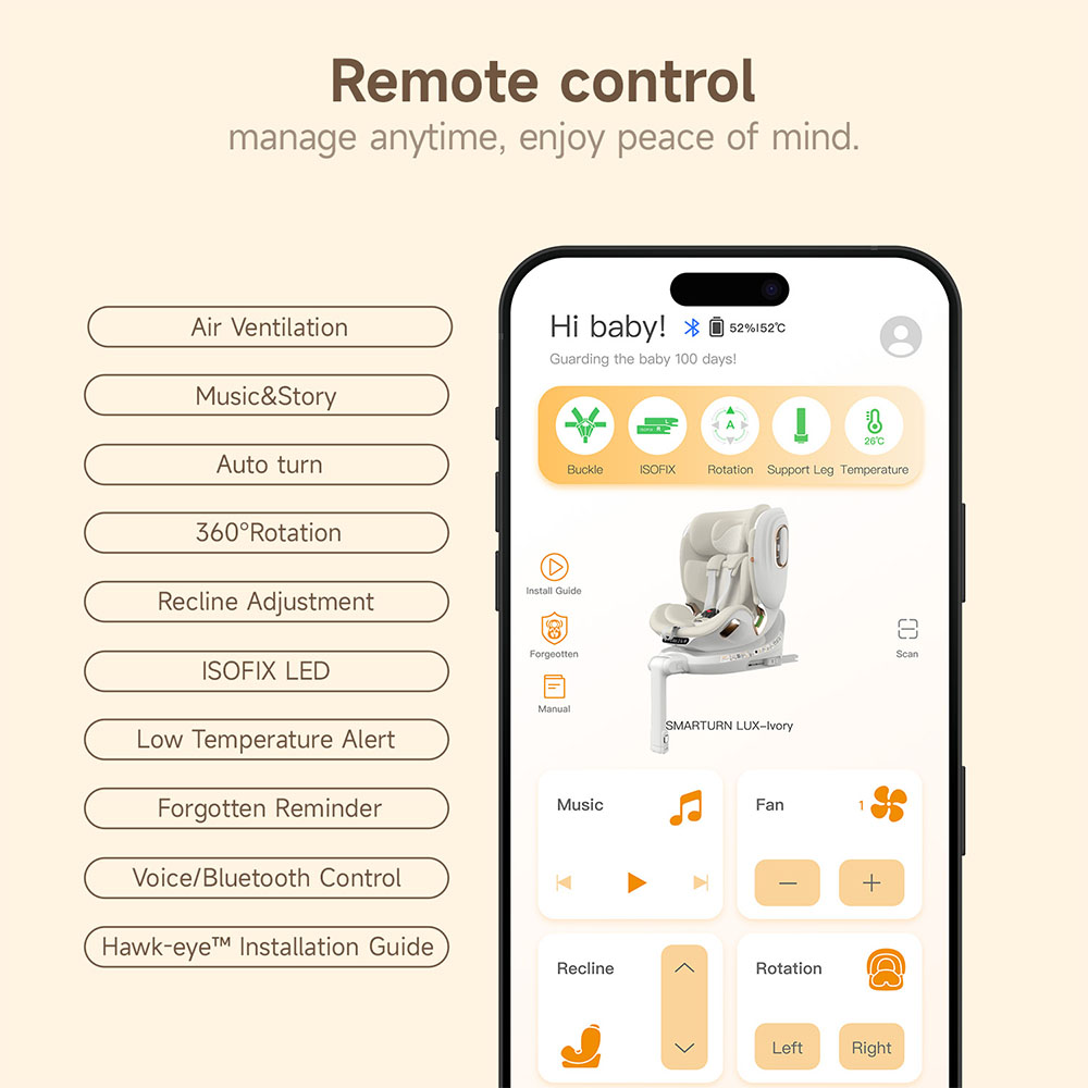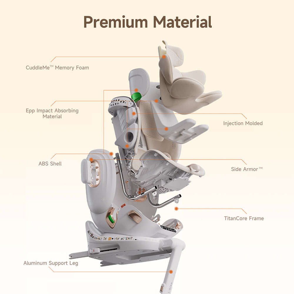 • 360° Swivel Function: Allows for easy securing of the child and quick switching between rear and forward-facing modes without re-installation.